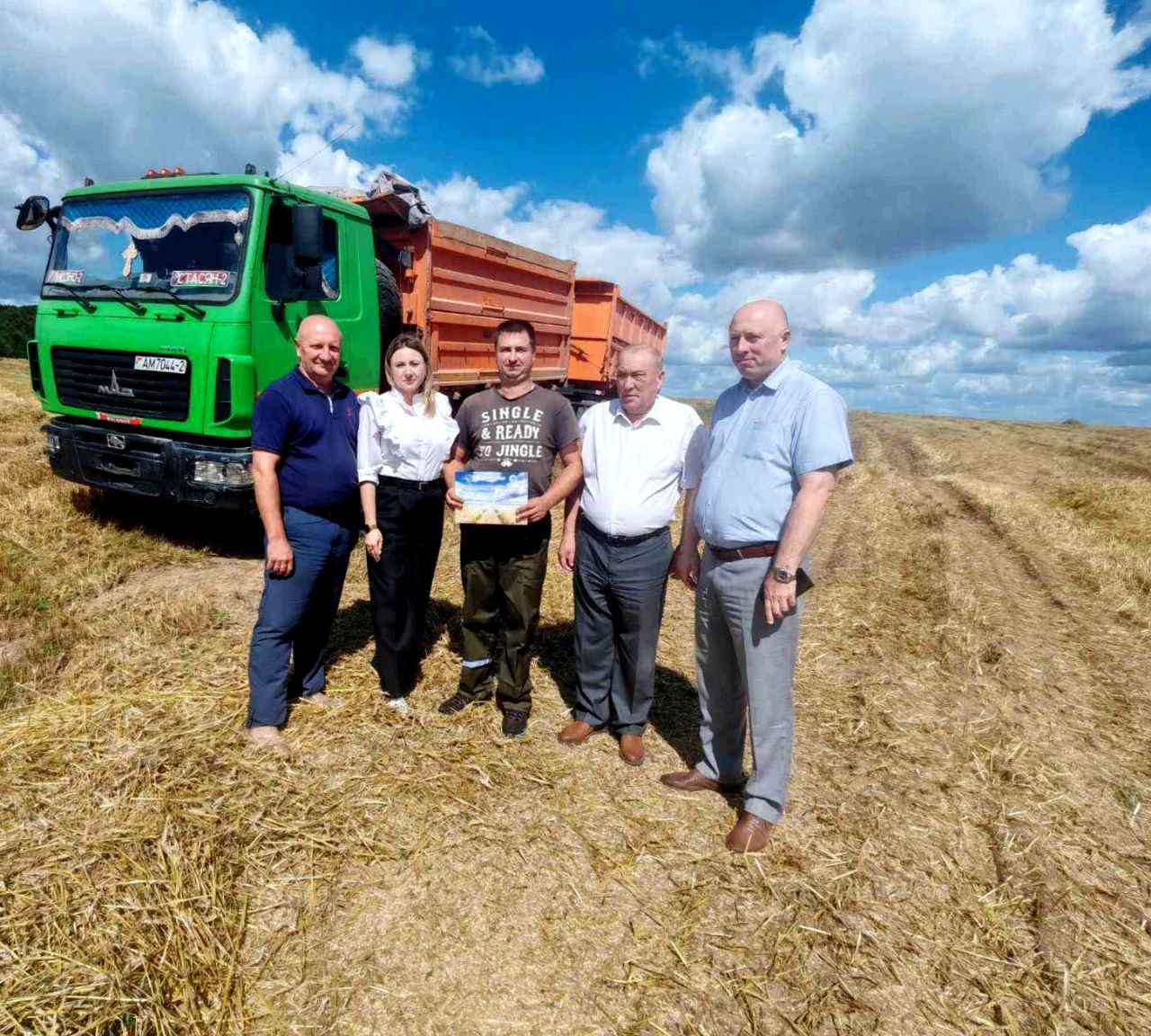 Хлеборобов СУП "Должа-Агро" за работу на уборочной отметили председатель республиканского комитета Белорусского профсоюза работников АПК Василий Хватик, председатель Лиозненского райисполкома Иван Федоров и председатель отраслевой областной организации Татьяна Диканова.