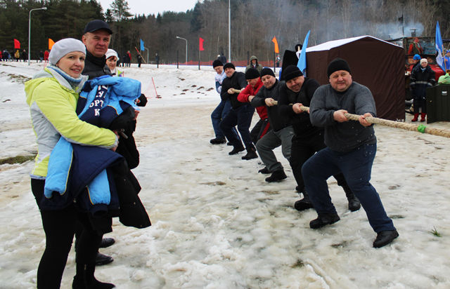 Затем в соревнованиях по перетягиванию каната наши ребята подтвердили, что они сильнейшие в этом виде, завоевав победу пятый год подряд. Команда в составе Андрея и Александра Цветковых, Сергея Петушкова, Олега Гончарова, Александра Никонова и Андрея Логвенкова не дала усомниться в своём преимуществе, уверенно перетянув на предварительном этапе команды Городокского района и Витебского государственного технологического колледжа. В финале мы встречались с ребятами из облгаза, но и им не удалось противостоять лиозненцам.