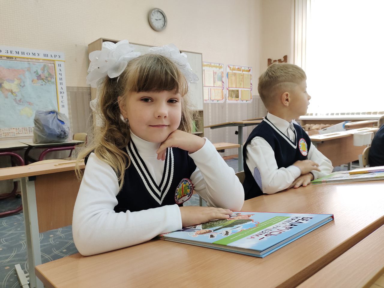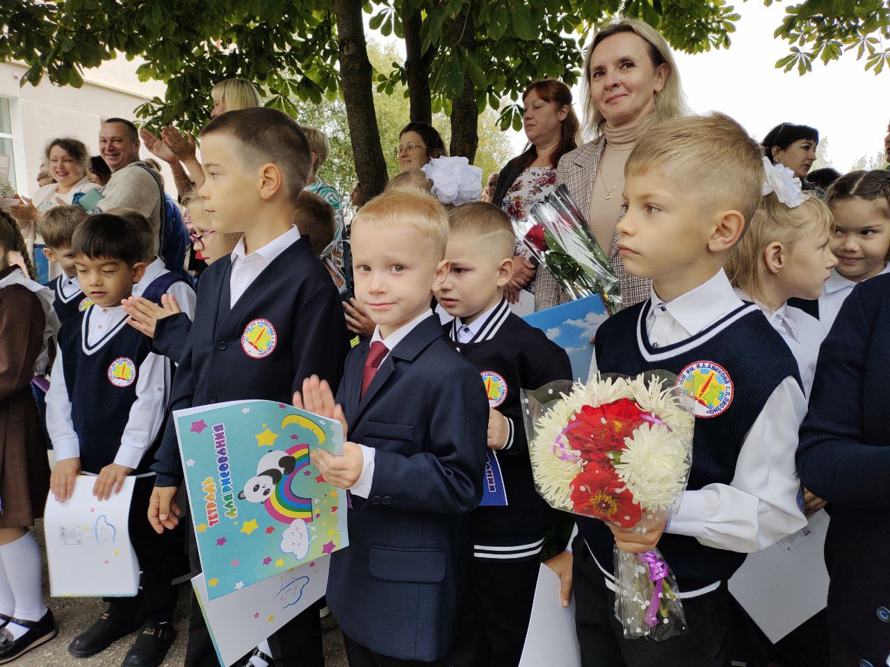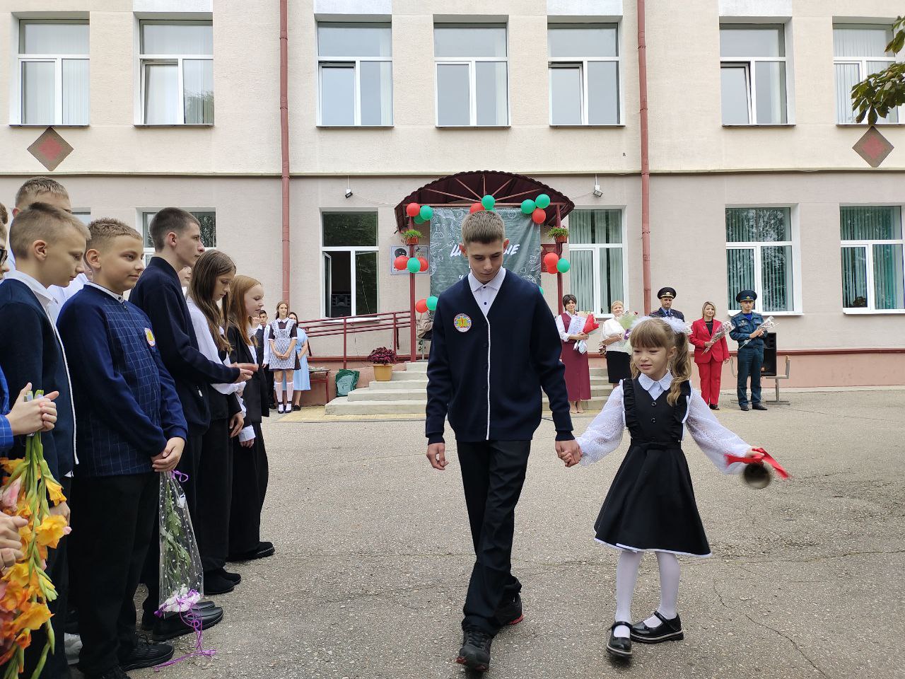 Моменты торжественной линейки, посвященной Дню знаний, в базовой школе им.И.А.Авекова горпоселка Лиозно