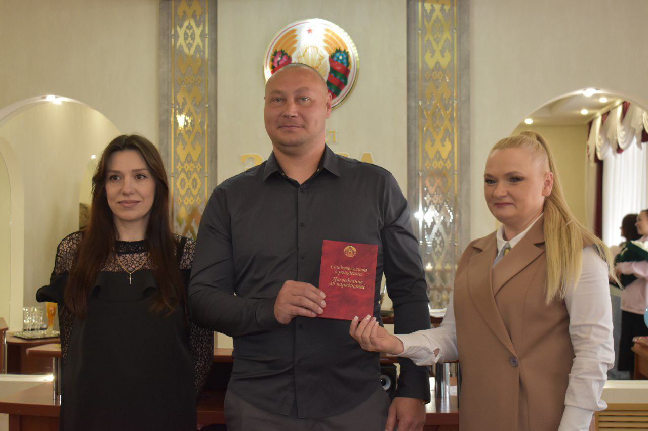 Свидетельство о рождении дочери Полины вручено семье Ольги Зеленковой и Дмитрия Семеняка.