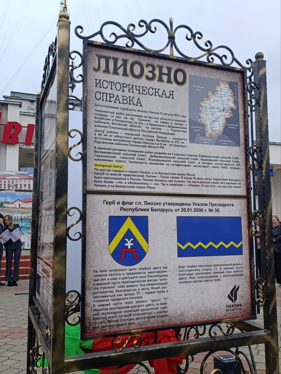 В День народного единства возле кинотеатра "Світанак" в центре горпоселка был открыт информационный арт-объект "Моё Лиозно".