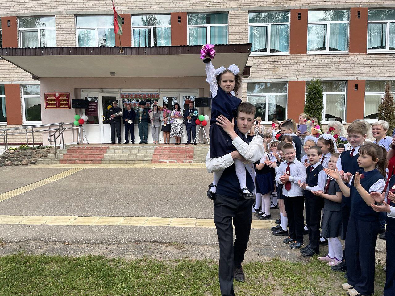 НА ТОРЖЕСТВЕННОЙ линейке в СШ имени М.В. Октябрьской присутствовали почётные гости: заместитель председателя райисполкома Марина Фалибога-Петухова, начальник отдела по образованию райисполкома Елена Крутикова, начальник РОЧС Иван Железовский, начальник ОГАИ РОВД Сергей Буров. Выпускникам, ставшим победителями II (районного) этапа Республиканской предметной олимпиады, а также отличившимся в творчестве, спорте, общественной жизни школы и района были вручены дипломы и премии. Иван Железовский и Сергей Буров также отметили памятными подарками и дипломами активных участников КЮСП и военно-патриотического клуба «Штурм». Кульминацией мероприятия стали школьный вальс и последний звонок, который доверили дать выпускникам 9-х и 11-х классов.