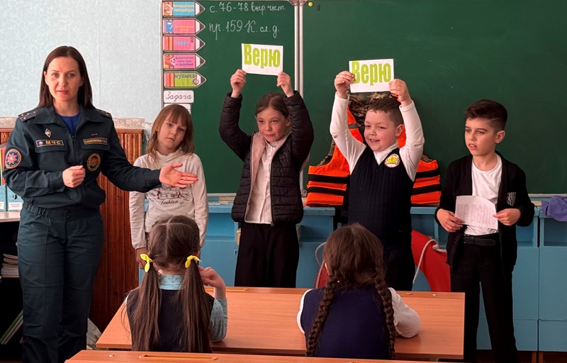 Ратавальнікі і прадстаўнікі таварыства ратавання на водах правялі ўрок бяспекі для навучэнцаў пачатковага звяна базавай школы імя І.А.Авекава гарадскога пасёлка Лёзна.