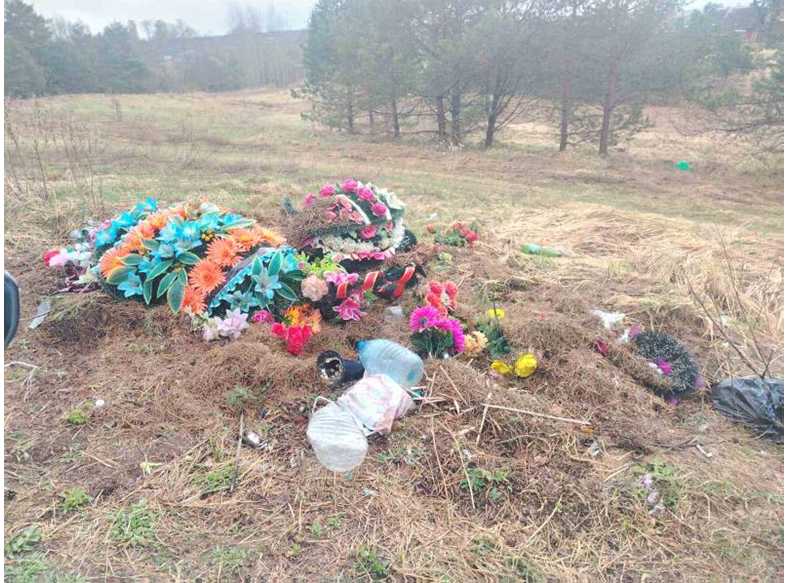 В ходе осмотра выявлены нарушения содержания территории гражданских кладбищ. Так, например, складированы твердые коммунальные отходы, в том числе использованные ритуальные принадлежности, вне установленных мест временного хранения отходов, что является нарушением санитарных правил и норм.