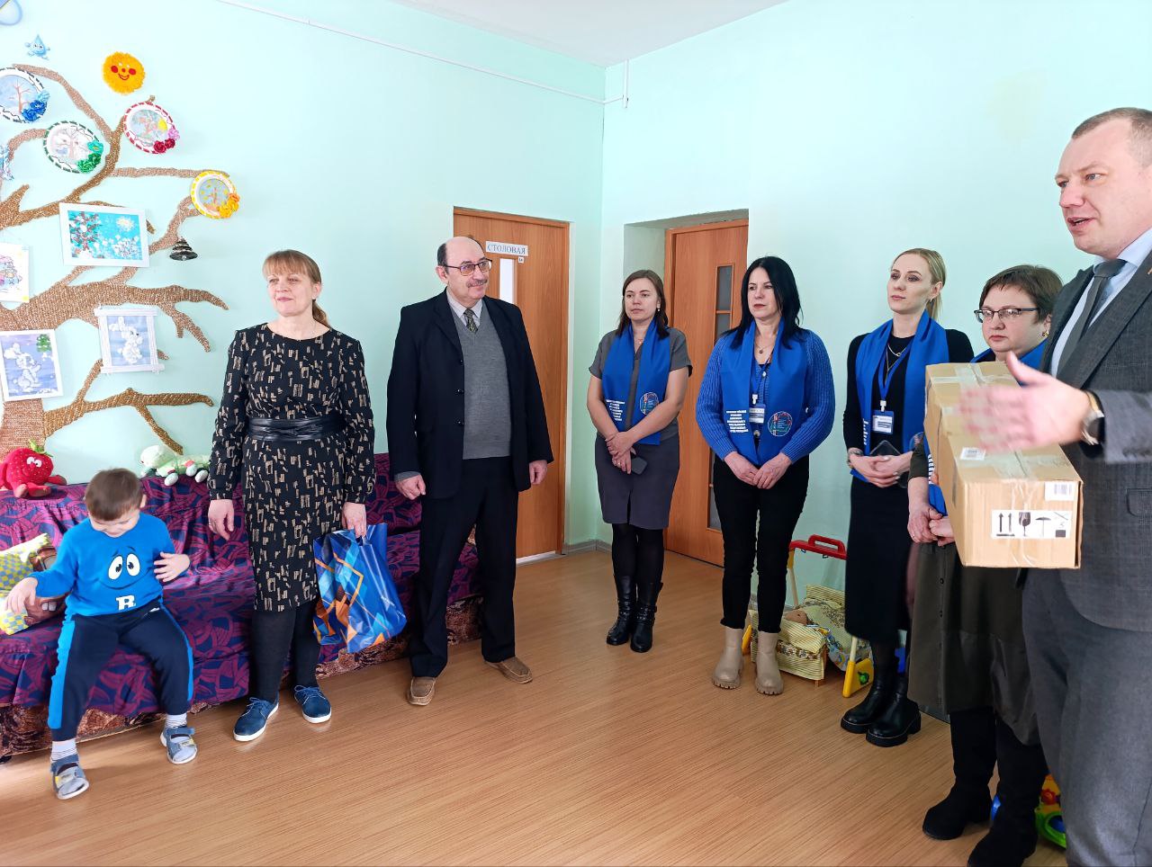 Председатель районной организации Олег Гончаров вместе с активом посетил центр, поздравил членов коллектива и ребят с праздниками и вручил директору Петру Даговичу важный и нужный подарок для центра - рециркулятор воздуха.