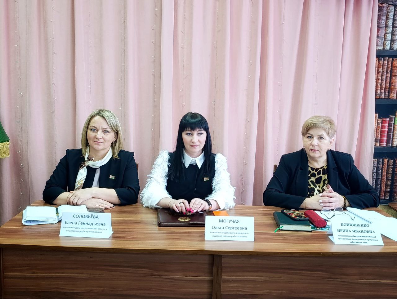 Важной частью встречи стал открытый диалог с начальником организационно - кадровой работы райисполкома, председателем районной организации ОО "Патриоты Беларуси" Ольгой Могучей, начальником отдела идеологической работы и по делам молодежи райисполкома Еленой Соловьевой, председателем Лиозненской районной организации профсоюза работников АПК Ириной Конюшенко.