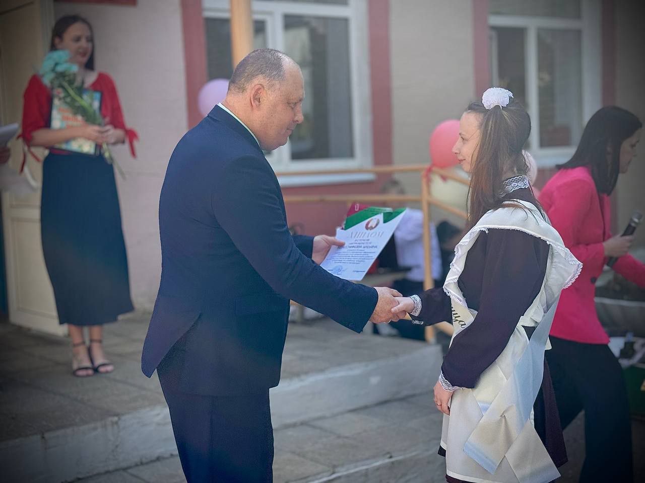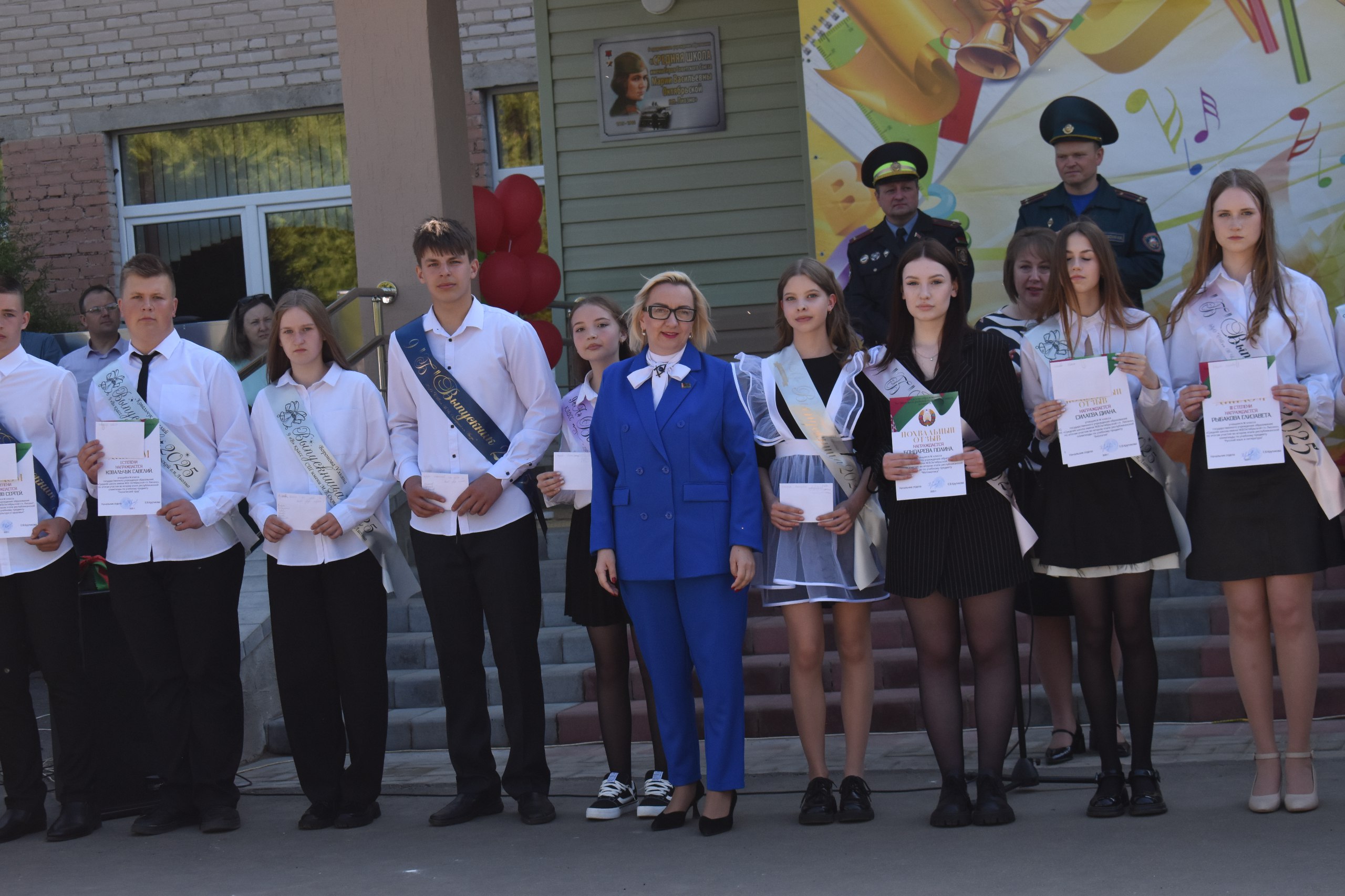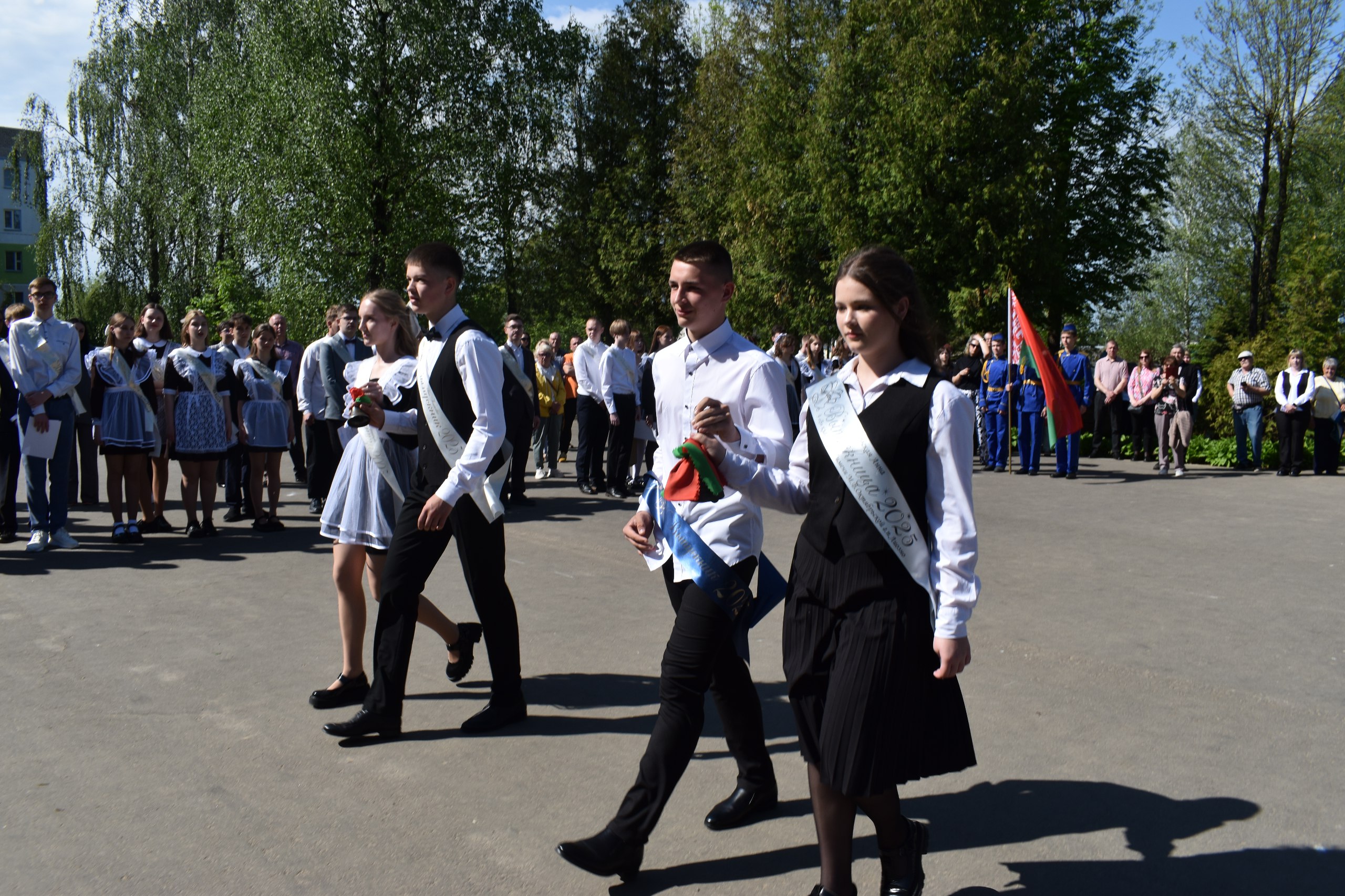 НА ТОРЖЕСТВЕННОЙ линейке в СШ имени М.В. Октябрьской присутствовали почётные гости: заместитель председателя райисполкома Марина Фалибога-Петухова, начальник отдела по образованию райисполкома Елена Крутикова, начальник РОЧС Иван Железовский, начальник ОГАИ РОВД Сергей Буров. Выпускникам, ставшим победителями II (районного) этапа Республиканской предметной олимпиады, а также отличившимся в творчестве, спорте, общественной жизни школы и района были вручены дипломы и премии. Иван Железовский и Сергей Буров также отметили памятными подарками и дипломами активных участников КЮСП и военно-патриотического клуба «Штурм». Кульминацией мероприятия стали школьный вальс и последний звонок, который доверили дать выпускникам 9-х и 11-х классов.