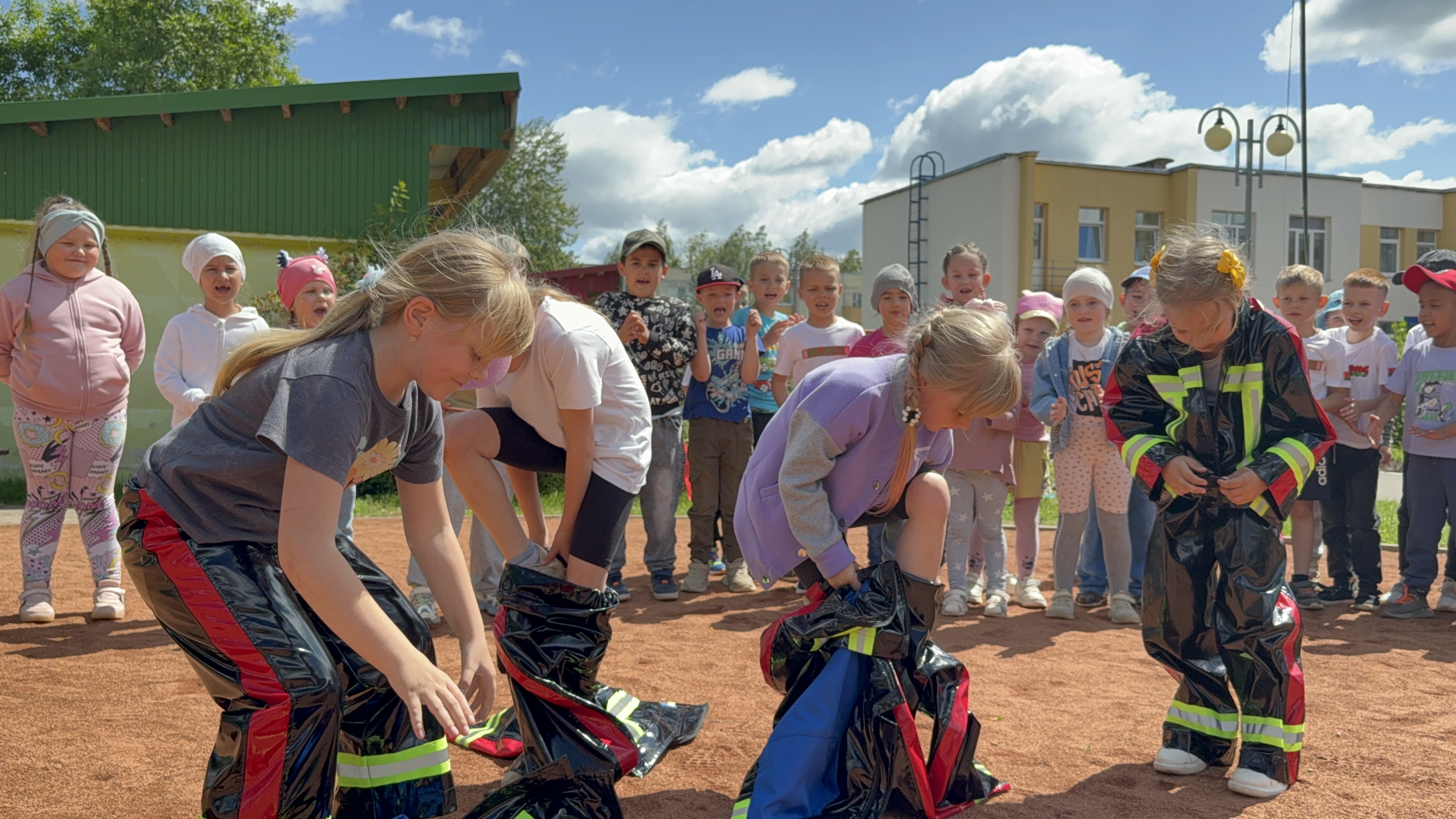 В начале участников состязания поздравили с праздником спорта и безопасности и провели танцевальную разминку, а дальше ребят ждала спортивная программа.