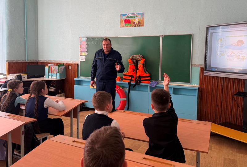 Ратавальнікі і прадстаўнікі таварыства ратавання на водах правялі ўрок бяспекі для навучэнцаў пачатковага звяна базавай школы імя І.А.Авекава гарадскога пасёлка Лёзна.