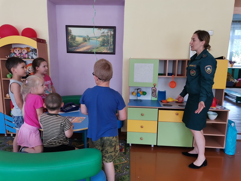 Кроме этого, спасатели уделили время и дошкольникам агрогородка Новое Село Крынковского сельского Совета, где напомнили, как вести себя в случае ЧС.