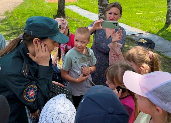 «Шифр 112» был разгадан, все участники получили полезные подарки от МЧС, но на этом сюрпризы не закончились, ведь на улице ребят ждала пожарная машина, которая подарила водный салют в честь начала смены и летних каникул.