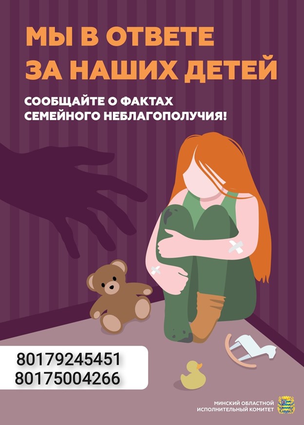 Если вам стали известны случаи насилия над детьми, немедленно сообщите эту информацию в отдел внутренних дел Лиозненского райисполкома по тел.: 5-65-40, 711-90-74 (МТС), 317-10-02 (велком) либо по телефону 102.